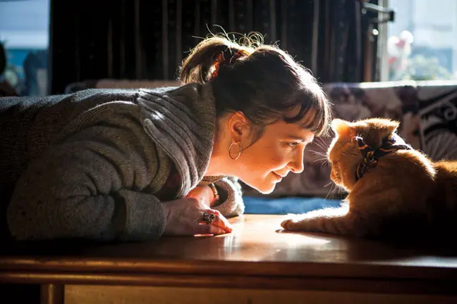 Crazy cat lady? Not exactly. In the mid-nineties, after working a clerical job long enough to buy a bargain duplex in downtown Portland, Hilda quit conventional employment to join a time-honored tribe of Maine outliers who make their slender living on the margins. Floated by rental income, Hilda launched Urban Catsitters, a one-woman home-visit service for doting cat owners on vacation. To compensate for working with “wealthy, pampered cats,” she volunteered with a trap-neuter-release program for unloved tabbies living in barns, streets, and alleys; her weakness in “release” accounts for the lucky freeloaders hogging all the chairs.