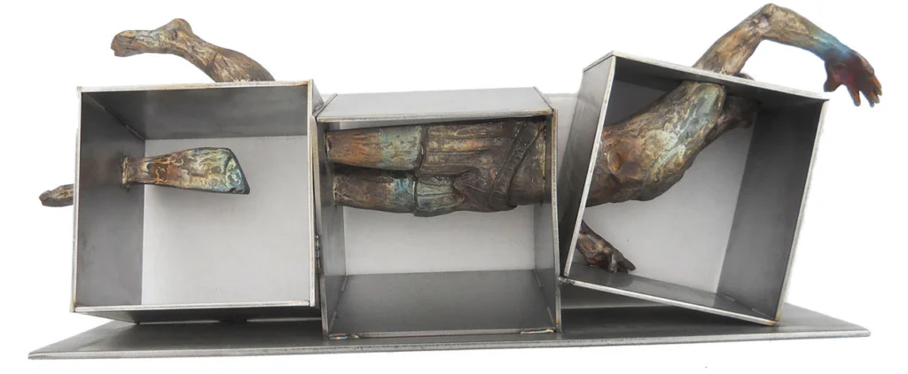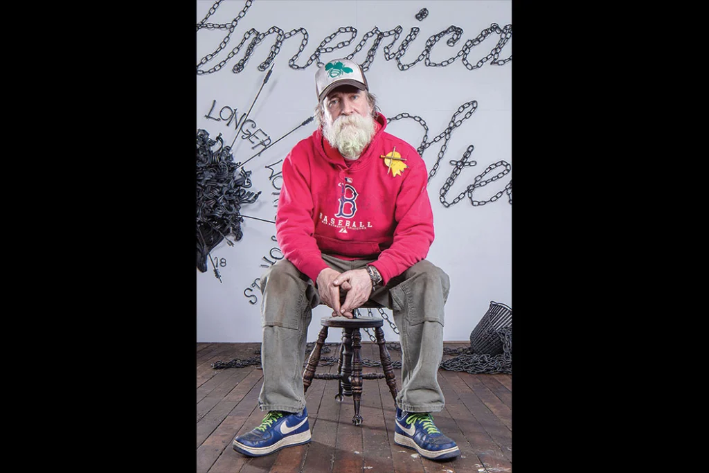[cs_drop_cap letter=”2″ color=”#000000″ size=”5em” ] This summer’s highlight, opening June 30, is American Steel by Brunswick’s John Bisbee, who hasn’t had a solo show in Maine in a decade. The sculptor uses forged and welded nails — and that’s all — to create minutely rendered objects that are at times instantly recognizable (a tree, a bathtub), at times writhing and abstract. Also this summer, installation artist Tom Burckhardt’s life-size cardboard rendering of an artist’s studio literally turned upside down (you can walk right in) and the environmental portraits and still-life photography of Jocelyn Lee. 21 Winter St. 207-701-5005.