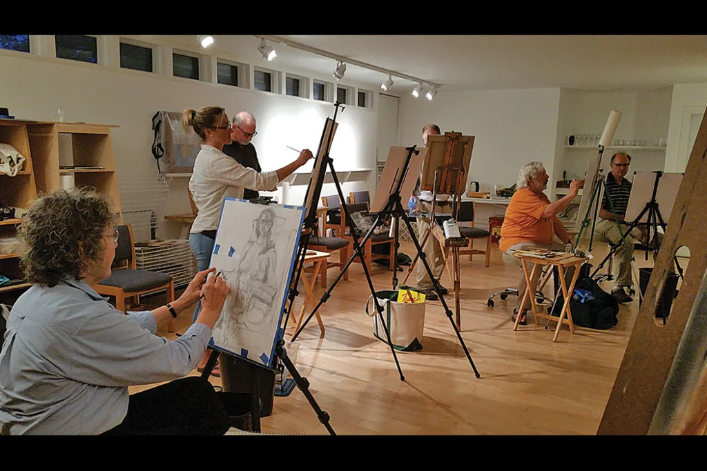 Donald Rainville’s Come What May, at Artemis Gallery; Donald Demers’s, Into the Gulf Stream, at the Gallery at Somes Sound; a figure drawing class at Bar Harbor’s ArtWaves; Maliseet basket by Fred Tomah, on display at the Abbe Museum in Bar Harbor.