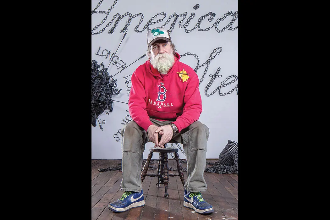 John Bisbee, whose nail sculptures take center stage this summer at CMCA; the Monhegan Museum; bear sculpture at the Langlais Sculpture Preserve; art on display at 250 Main Hotel; Jocelyn Lee’s Raising the Cherry Tree, at CMCA.