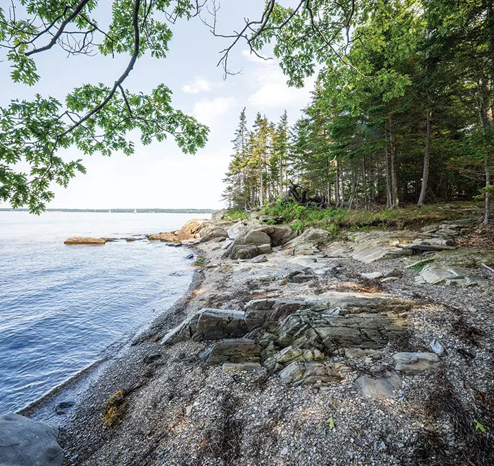Since Ryan Conery-Poulin moved to Maine nearly a decade ago, Little Whaleboat Island has provided a natural escape for him and his family. Conery-Poulin has spent many a summer afternoon with his wife and three kids out on the island, probing tide pools, clambering up rocky ledges, exploring the forest of century-old oaks, and savoring the sensation of being on a remote island, despite it being just five miles from the Freeport town dock. He treasures the memories they’ve made watching bald-eagle fledglings learn to fly, walking across the sandbars to Tuck and Nate islands at low tide, and discovering the fragrant sea lavender that grows in the island’s meadow.