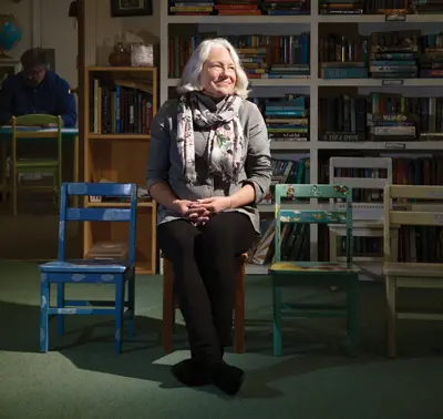 “It’s like eating dessert all day long,” she says. “It’s something I know how to do really well. And for a teacher it’s the ultimate satisfying response — to sit with a kid who’s working on a memoir or a poem or a piece of fiction, to help them untangle it and make it truer and stronger. Then I pick up my little chair and go on to the next one.”