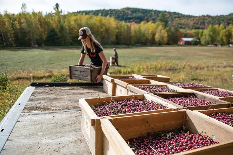 The frustratingly philosophical advice passed along by the previous owners, Thayer says, was that “you have to let the bog tell you what to do.” First-time farmers, she and Leen have since been learning as much as they can about growing, harvesting, eating, and cooking cranberries, aided in part by a mentor farmer. “It’s hard to find an organic-cranberry farmer in Maine,” Thayer says. “He’s out in Wisconsin. He’s trying to help me figure out what we can improve on next year. There’s an art to it.” As is often the case with plants, timing is everything. They have to know when to flood the fields, after the plants have gone dormant, and when to drain them, before the spring growth begins. The harvest usually starts in October and continues into early November. This year, the crop is going to be small. Maybe they put the water on too early. Or maybe they left it on too long. Maybe the harvesters damaged the vines. “That’s farming,” Thayer says.