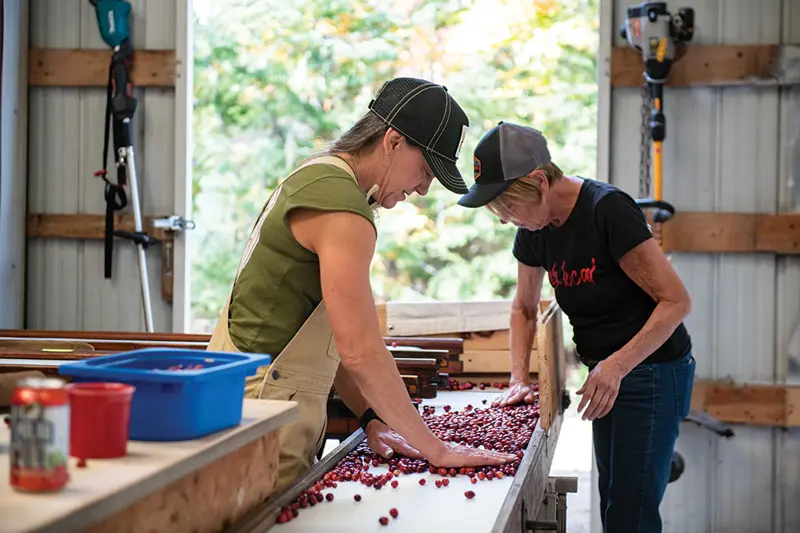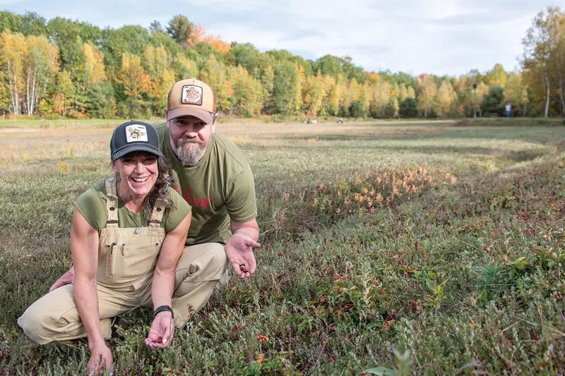 She isn’t too upset. It helps that the couple makes their farming life work by combining incomes — Leen works off-farm as an electrical engineer and Thayer sometimes picks up work as a Registered Maine Guide. Plus, even a small harvest of cranberries can go a long way, and Thayer has learned plenty of ways to enjoy New England’s native sour fruit. She makes juice concentrate, infuses vodka, bakes scones and breakfast bars, chops berries for salsa, dresses fish, and rolls fruit leather. Sugar, when she uses it, is a light touch. “Most people,” she says, “spend too much time trying to make cranberries sweet.” Cranberries weren’t really on her radar before they started farming, she admits, “but now I love the fruit.”
