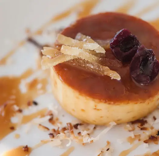 The dessert list (with optional rum pairings, naturally) includes a boozy crème caramel-style flan, served with Maine maple syrup, and an airy combination of panna cotta and mango lassi, topped with whipped cream and pomegranate coulis.