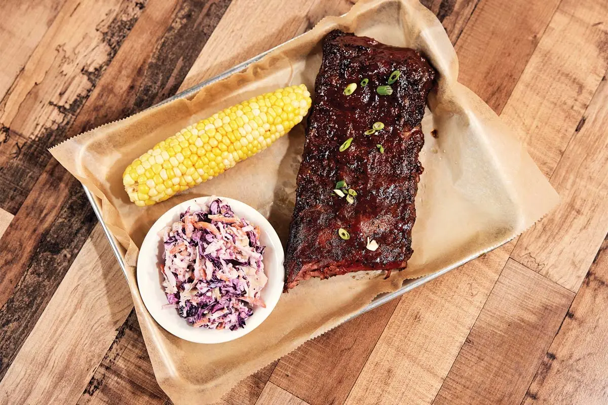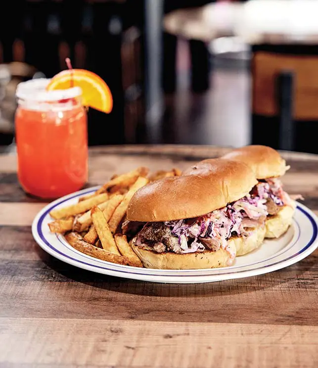 They decided they wanted to offer something for everyone, so they included familiar shore fare — haddock, scallops — plus flatbreads and some vegetarian offerings, like barbecue tofu and mushroom sliders, utilizing local ingredients whenever possible. For appetizers, there are fried pickles, cheese fries, and wings. The chili comes regular or vegetarian. Still, smoked meats remain the focus (even a couple of salads come with bite-size cuts of pork belly). Pulled pork, pork ribs, and beef brisket all get two sides, and barbecue baked beans and cornbread are a tough combo to beat, but a good argument could be made for adding the creamy mac and cheese as an extra. Just about everything, including the hot sauces, is made from scratch, and Goldrick takes particular pride in his rotating cast of specials, like a smoked pork chop served with an herb spaetzle and chutney. “It’s really funky,” Moreau laughs. “Sometimes it’s like, ‘Can we do this?’ And I’m like, ‘Listen, we’re eating in a gas station. We can do anything.’”