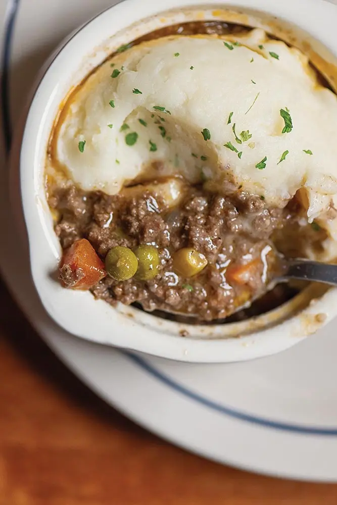 Pottle’s fare is homey too, most of it created from his family’s recipes. The pulled pork is inspired by his niece’s preparation: pork shoulder is slow-cooked in beef stock seasoned with garlic, onion powder, and brown sugar until it slouches into saucy slivers. The meat is piled into soft brioche buns and served with the vinegary cabbage slaw Pottle’s grandfather concocted in the 1960s for his Camden restaurant, Yorkie’s. Pottle’s chicken and biscuit is a spin on his mother’s Bisquick chicken pot pie, but he tops his creamy rosemary-and-thyme-scented stew with his grandma’s biscuits, the legendary mainstays of community suppers at Tranquility Grange, in Lincolnville.