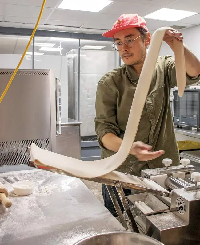 There’s the pork-and-cabbage recipe passed down from Lee’s grandmother and aunt. There’s also spicy beef, vegan mushroom, and a new variety, blueberry and cream cheese. The machine has ultimately done what Lee and Guyer wanted it to do, upping production, even if it isn’t precisely what they expected. “We’d been in touch with another of the manufacturer’s customers, and we thought we’d ordered the same machine as them,” Lee notes. “Ours looks completely different.”