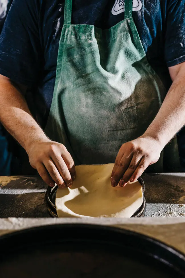 After Prohibition’s repeal, Pat put in a taproom and started pouring beers, and he kept expanding the menu throughout the 1940s. In the early ’50s, when a nearby competitor called Pizza House started picking up steam, Pat and his wife, Fran, started researching their own pizza recipe. The day they debuted it, they aimed to sell 50 pizzas — and ended up moving 150, Bruce says. By then, everyone around Orono simply referred to the place as “Pat’s,” so when the Farnsworths decided to morph into a pizzeria, they rolled with the nickname. The first satellite location came into being when a man from Prince Edward Island visited his girlfriend at UMaine and fell in love with the pizza. He worked with the Farnsworths to open a Pat’s in his hometown and eventually designed the logo that any Mainer will recognize.