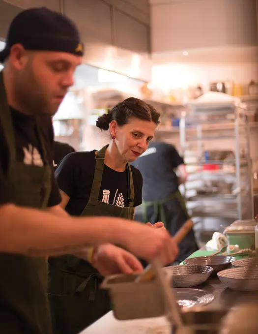 After spending 13 years focused on Mexican food at El Camino, her beloved neighborhood eatery in Brunswick, chef Eloise Humphrey is throwing off the constraints imposed by a single style of cuisine. Salt Pine Social, her new venture with El Camino co-owners (and sister and brother-in-law) Daphne and Paul Comaskey, is a freewheeling plunge into modern American cookery.