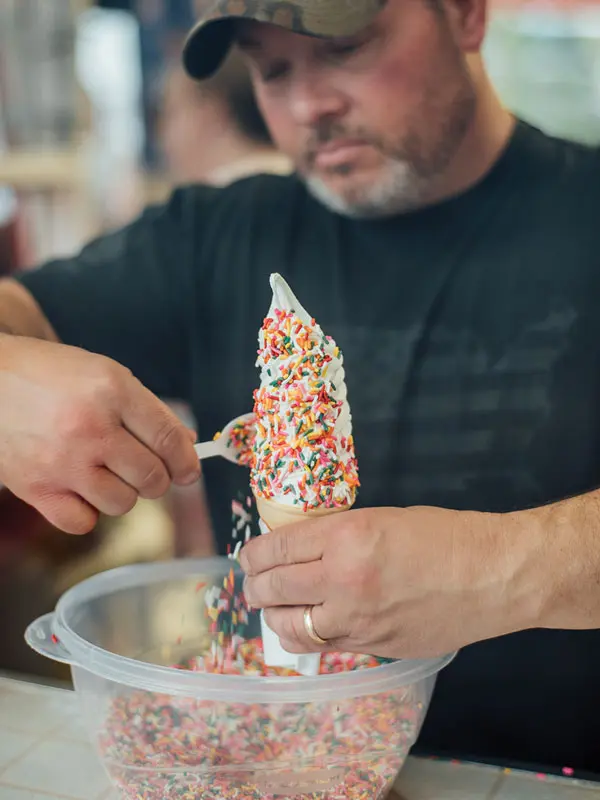 The Curtises’ only two employees had the day off, for their high-school graduation, so Jason and Shannon were working the window with their daughter, Sydney, who’s studying to be a physical therapist but had a break from clinical rotations. She’s been scooping since she was 14 — and when her parents had cold feet about whether to buy the place, she was the one who nudged them in the right direction: “Nope, sorry, you already told me — you have to buy it!” she insisted. Their son, Drake, stationed in the Southwest with the Maine National Guard this summer, has helped out over the years too.
