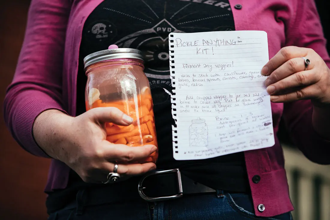 That night, after my daughter had gone to bed, my phone buzzed with a message from Jessie, letting me know that the Easter Bunny had stopped by a bit late. On the stairs, I found a double IPA and a Mason jar containing a glass weight and handwritten instructions for fermenting vegetables. She didn’t mention the hours of strife that had surely filtered up through the floorboards — she didn’t have to. Later, watching my mixture of sliced carrots, peeled garlic, and salty water grow bubblier by the day felt like another little gift.