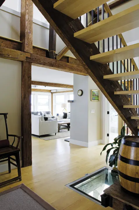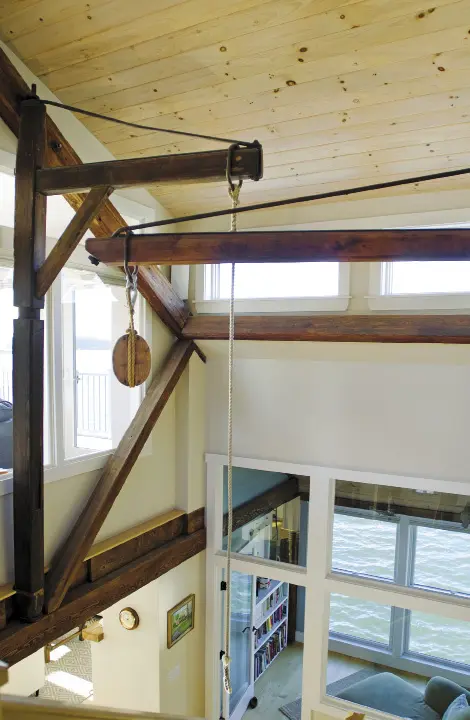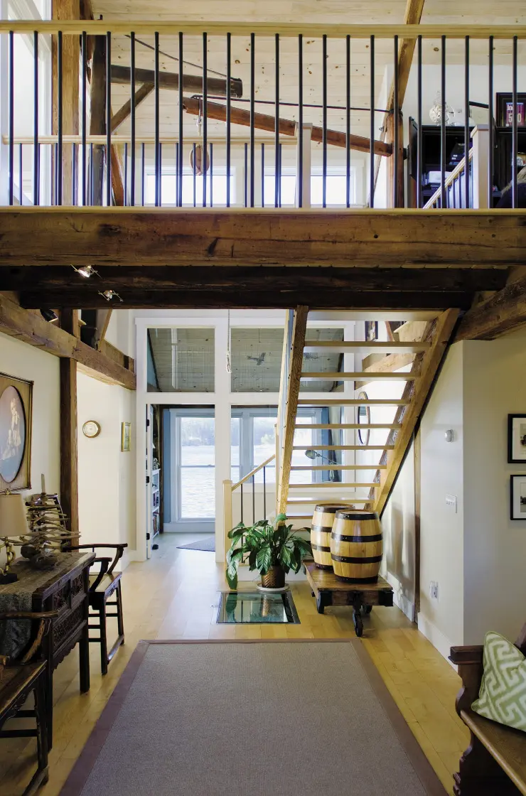 One of the oldest documented structures in South Freeport, the 200-year-old former cannery has also served as a boat repair shop and a Prohibition-era liquor-smuggling operation. A decade ago, the late Janet Newlin, a teacher who was active in community affairs, converted the derelict building into a house, painstakingly preserving the original hand-hewn beams and the pulley and hoist that once raised barrels of liquor through a trap door in the floor of what is now the front hall. The trap door is still there, covered with glass (at high tide, the water sloshes just five feet below), and a pair of kegs on a wooden trolley give a spirited wink to history.