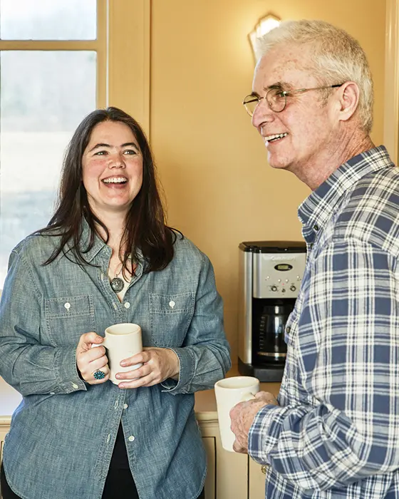 But their first day of house shopping ended in frustration. Nothing came close to meeting their needs, which included spaces for their restoration business, called fineartistmade, and studios (Jackson is a photographer and Mealey a painter). Discouraged, they drove to Perry the next morning to see the last house on their list. “It was woods, woods, woods, woods,” Jackson recalls, “then all of a sudden a brook, an orchard, a meadow, and this house. It was like a mirage.”