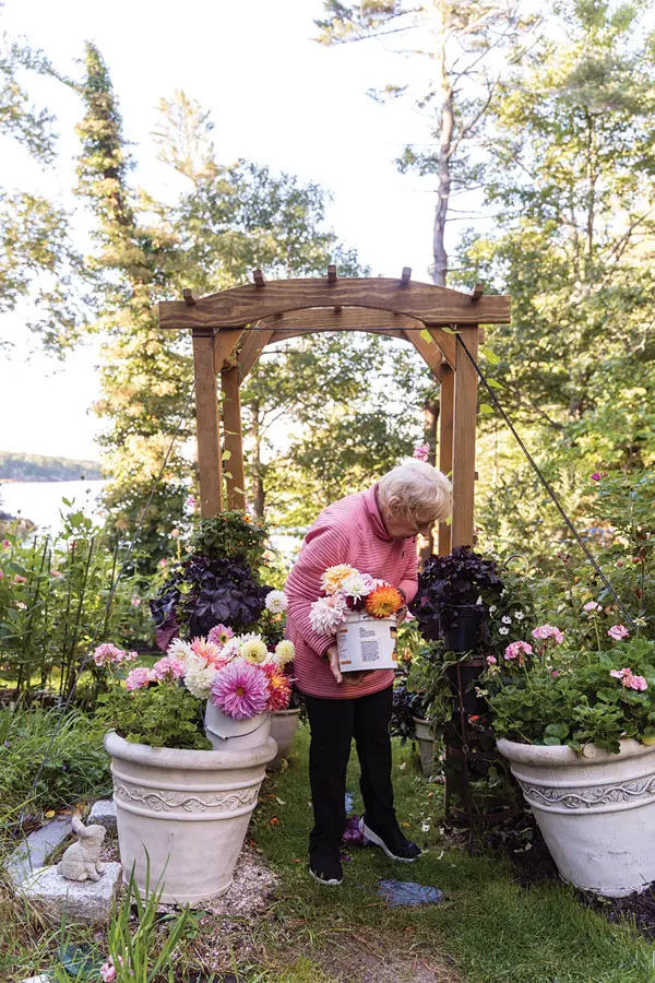 Stallworth grows more than 50 dahlia varieties to ensure there’s always something in bloom to give away. She cuts bouquets for visitors, the weddings of friends and their children, and the Portland restaurants owned by her son, Harding Lee Smith. A member of the Bath Garden Club, she gives presentations on growing dahlias with Suzanne Bushnell, of the Harpswell Garden Club. And in the fall, she bags up tubers for friends and garden-club fundraisers, passing on the gift that started her own dahlia journey.