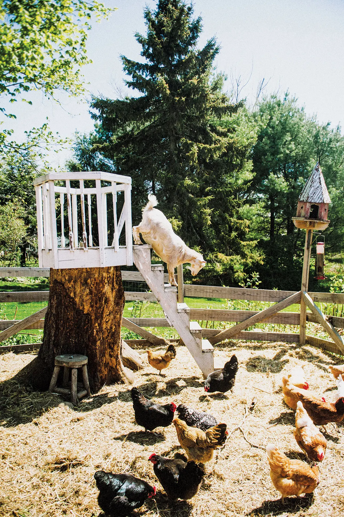 The goats, like doting pets, follow Vogels everywhere. He raised them, bottle-feeding them like babies, since they were two weeks old, and they’re about to become first-time mothers. The four nesting boxes are filled to capacity, one chicken squawking madly. “She needs to announce it whenever she lays,” says Vogels, with a farmer’s paternal, low-key pride.