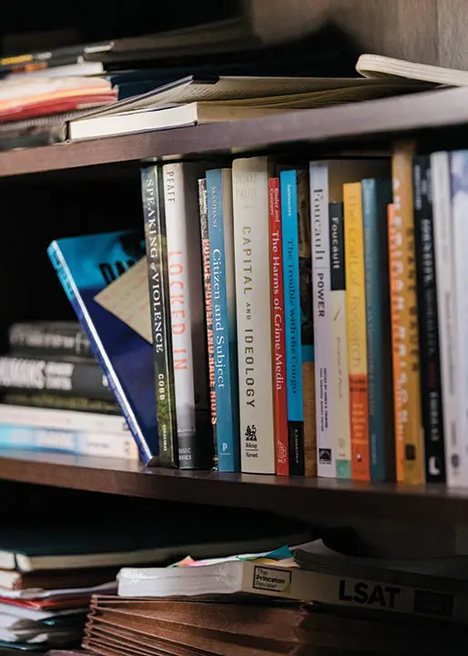 More freedom made managing his time with schoolwork more of a challenge as he started into PhD classes through George Mason. He also had to learn to cook, and he was overwhelmed by grocery stores — “In prison, there were like five types of chips you could buy,” he says, “and now there’s a whole aisle.” This spring, his probation officer approved a trip to Virginia so that he could present at a conference and, for the first time, visit his college campus. He drives down to South Portland once a week to mentor kids at the Long Creek juvenile detention center, attends a weekly reentry support group in Lewiston, and, this fall, is teaching a University of Maine at Augusta course on narratives of incarceration.