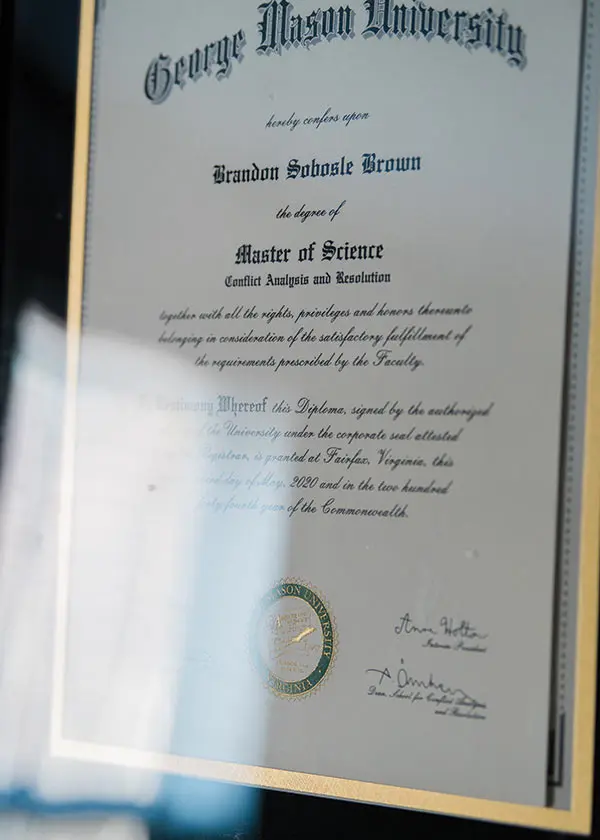 A new program at the prison allowed inmates to take courses through the University of Maine at Augusta. By 2018, Brown had associate’s and bachelor’s degrees in the liberal arts. Nobody had ever earned a postgraduate degree from behind bars in Maine, but Brown, feeling he had exhausted other avenues for growth, pressed for the chance. He won permission from warden Randall Liberty (now commissioner of the state corrections department), applied to a master’s program in peace studies and conflict resolution at Virginia’s George Mason University, and got accepted.
