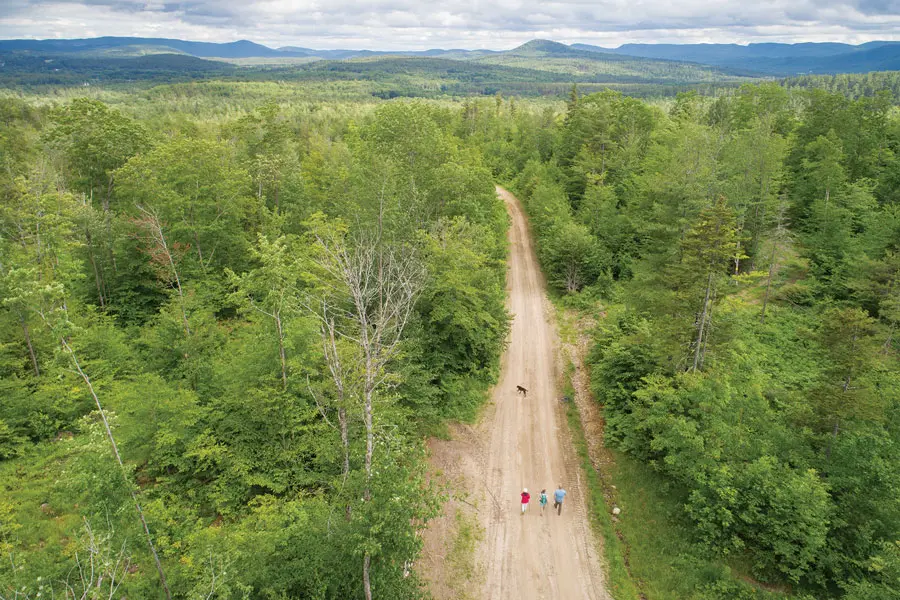 It wasn’t until the early 2000s that interest in a new model of community forest took root in Maine. A group of Washington County residents, worried that a timber company was mismanaging large holdings around West Grand Lake, founded a land trust, raised millions of dollars to buy the tract, and turned 27,000 acres into the Downeast Lakes Community Forest. As with town-owned forests of yore (and unlike many present-day preserves managed by land trusts), sustainable harvesting was allowed. Instead of profiting a landowner, timber sales covered costs of ongoing conservation work and recreational infrastructure — emphasis had shifted from resource extraction to environmental stewardship and hiking, biking, and paddling.