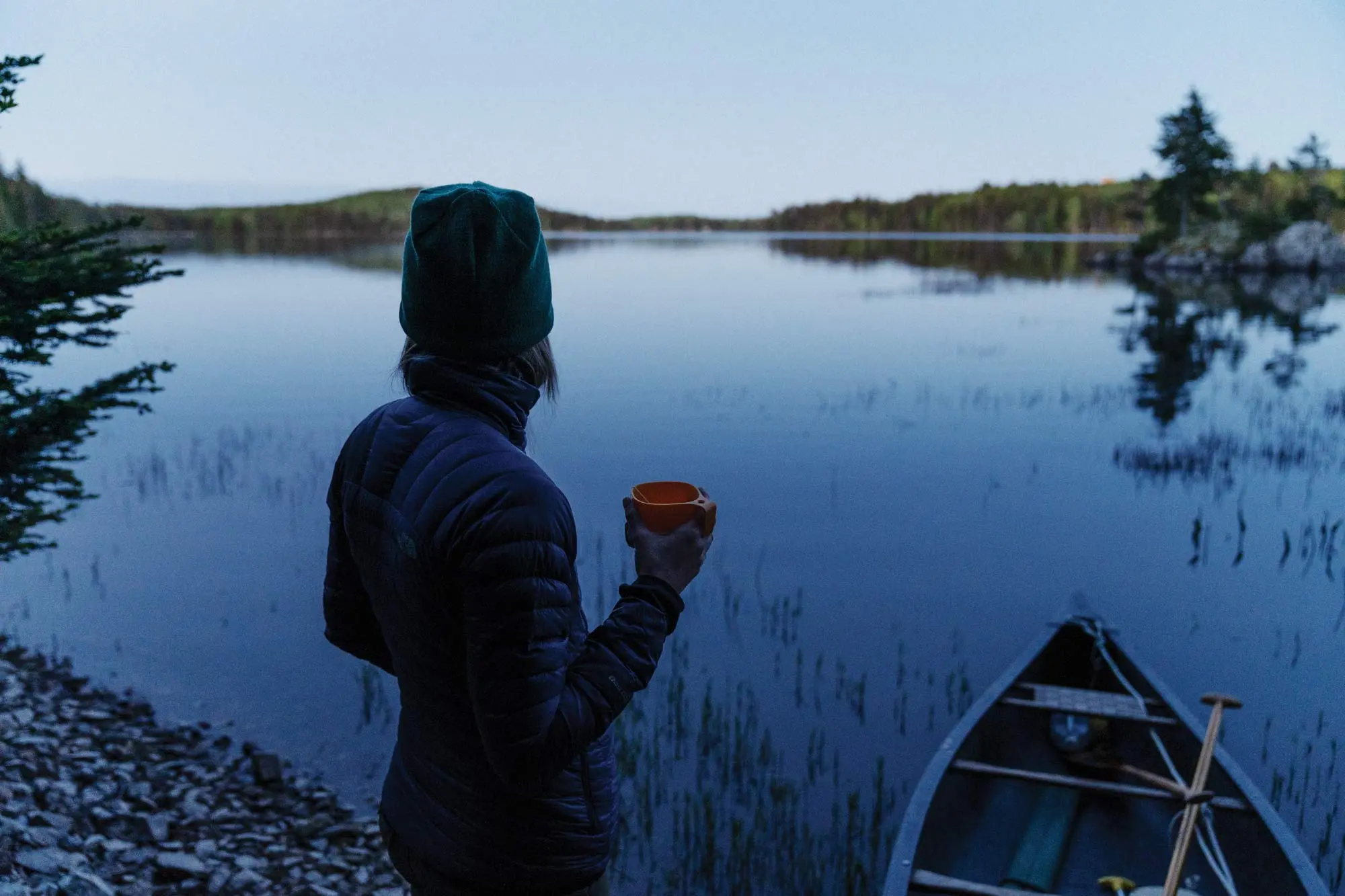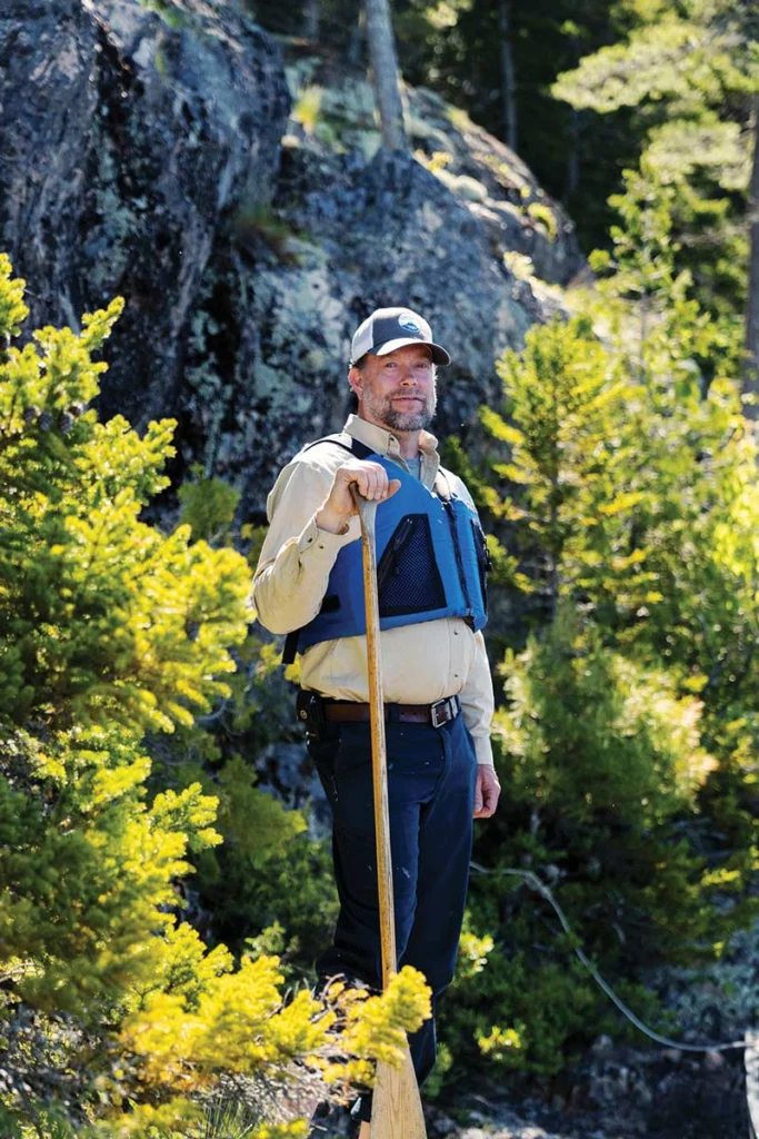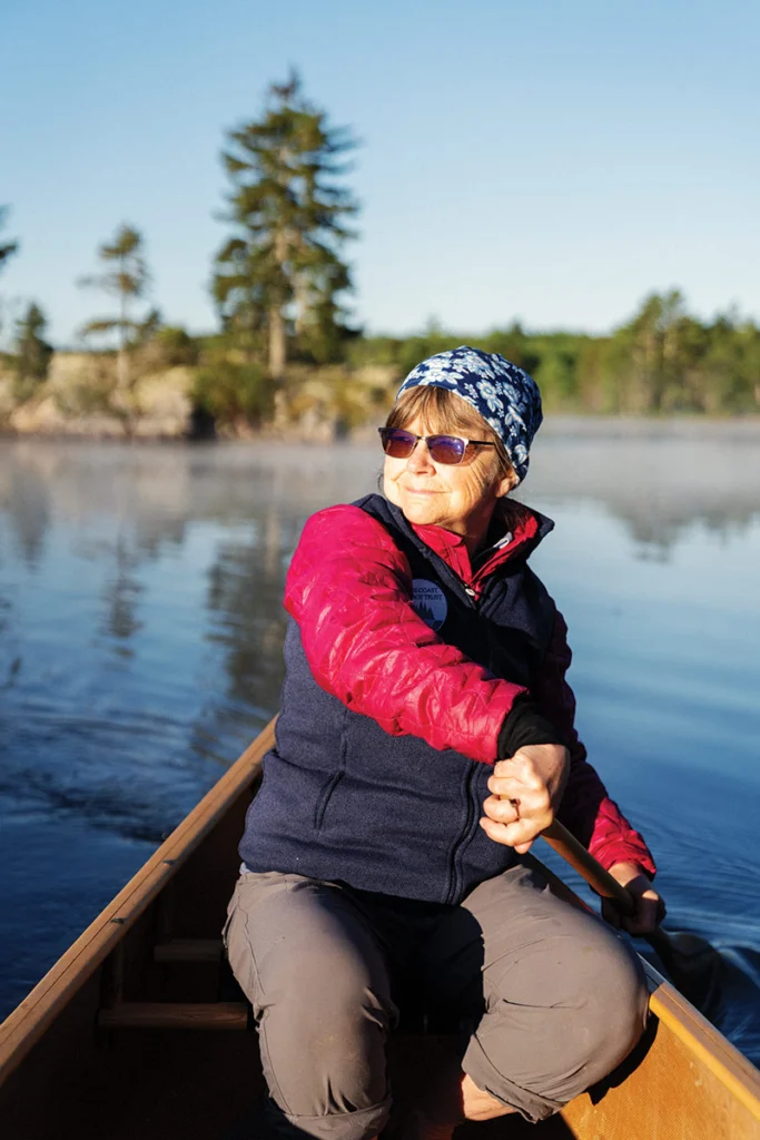 On our last morning, we’re in no rush to get back on the water — we aren’t excited to leave. We linger outside the cabin, munching on oatmeal and granola bars at the picnic table, enjoying some last peaceful moments on Rocky Lake. When we do get into the canoes, I’m back in the stern, with photographer Tara Rice up front. My J-stroke has improved some since yesterday, and we paddle largely in silence, fully immersed in the experience. As our boat follows in the wake of van de Sande’s, the unspoiled shoreline sliding by, I can almost picture what it would’ve been like to paddle here 7,000 years ago.