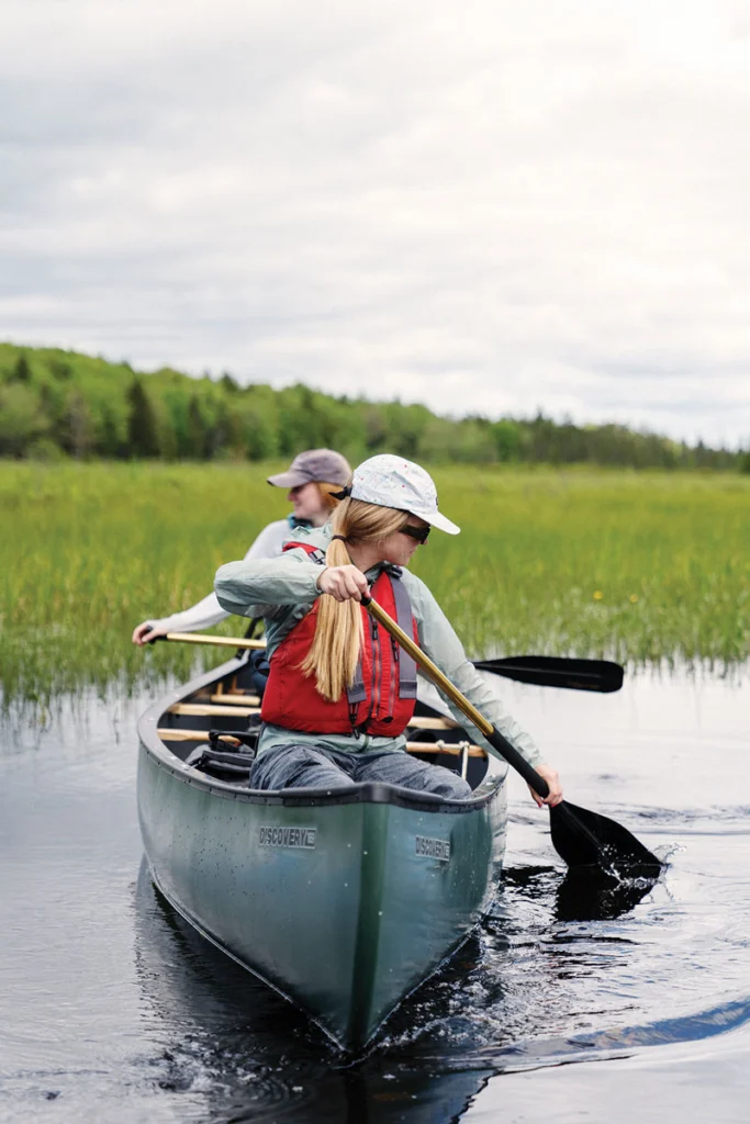 Right now, MCHT’s planned paddling trail ends at Rocky Lake, although historically, the Passamaquoddy trail continued into Sunken Lake, then portaged into Josh Pond, to the south, which eventually drains into Machias Bay. But the land surrounding those lakes is privately owned — it’s among 5,000 acres belonging to Saturday Night Live impresario Lorne Michaels. One day, van de Sande and Ham hope to see the entirety of the historic portage trail restored, but they’re in no rush. “Having the luxury of piecing this kind of land together and thinking about it as more than just a quick hike, in and out, is new to us,” Ham says. “We are figuring out how to tell the story of the trail in the best way possible.”