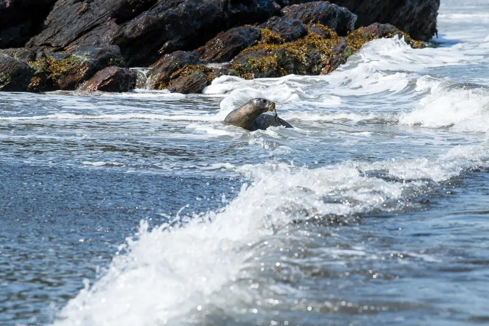 The sun was high overhead as Dominique Walk, assistant stranding coordinator for Marine Mammals of Maine, drove across the Cribstone Bridge to Bailey Island in late May. Earlier that morning, a caller reported that a harbor-seal pup had been swimming and resting around ledges at the northern tip of the island for several days, with no signs of its mother. “I wish they’d called us sooner,” Walk said. “But they said the pup has been swimming, so hopefully that’s a good sign.”