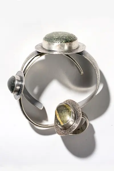 [cs_drop_cap letter=”W” color=”#000000″ size=”5em” ]hy set a rough beach stone into an elegant piece of jewelry rather than skipping it into the surf? “I find them to be touchstones of a place,” says Boothbay Harbor artist Janet MacPherson Moller, whose Dancing Stone Studio does plenty of work with beach stones. Each has a personality, she says, evoking the stretch of coast where it was found, and specific beaches yield rocks with unique textures. Some Maine beach stones are softer and easier to drill, while others are valuable for their color, with hues of speckled grays or deep blues. “You see textures everywhere,” says jeweler Anita Roelz, of Woolwich’s Circle Stone Designs. “I’m always looking for organic textures that are identifiable with my work.” In search of a few standout pieces, we left no stone unturned.