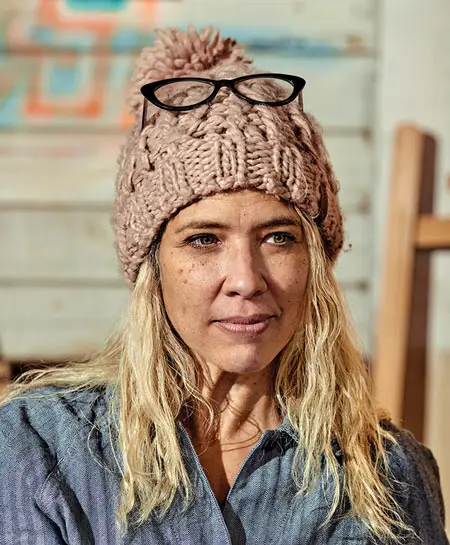 “We have a little bubble here and we’ve worked pretty hard to maintain it,” jewelry designer Coco Corral says from the barn turned studio she shares with her painter husband, Gil. The barn is attached to an 1880 farmhouse they’ve lived in since 2005, when they moved with their daughter to Biddeford from Portland, Oregon, to be closer to family. Outside, there’s a busy crossroads, with fast-food restaurants and a mini mall. Inside, large windows face a tree-lined yard, vintage sofas perch atop a mosaic of threadbare Oriental rugs, and a pellet stove’s woodsy warmth syncs with the aroma of the building’s century-old pine.