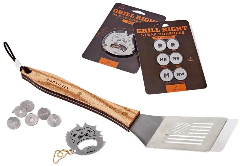 For cookout cognoscenti, a mahogany-handled spatula (matching tongs available) and a bristle-free Grrilla scraper that looks cool, opens bottles, and keeps little metal fibers out of your food. Grilling for a crowd? Ingenious stainless-steel “meat charms” help the grillmaster keep track of which burgers need to be cooked to which degree. Spatula, $59; Grrilla scraper, $14; meat charms, $18. Zootility, Portland. 207-536-0639.