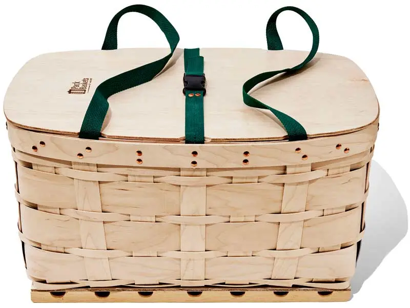 Made by a husband-and-wife team from strips of Maine maple veneer, these classic baskets mimic the ones that guides around Grand Lake Stream traditionally tote for shore lunches. A maple divider helps keep provisions organized. $120. Pack Baskets of Maine, Lincoln. 207-989-0823.