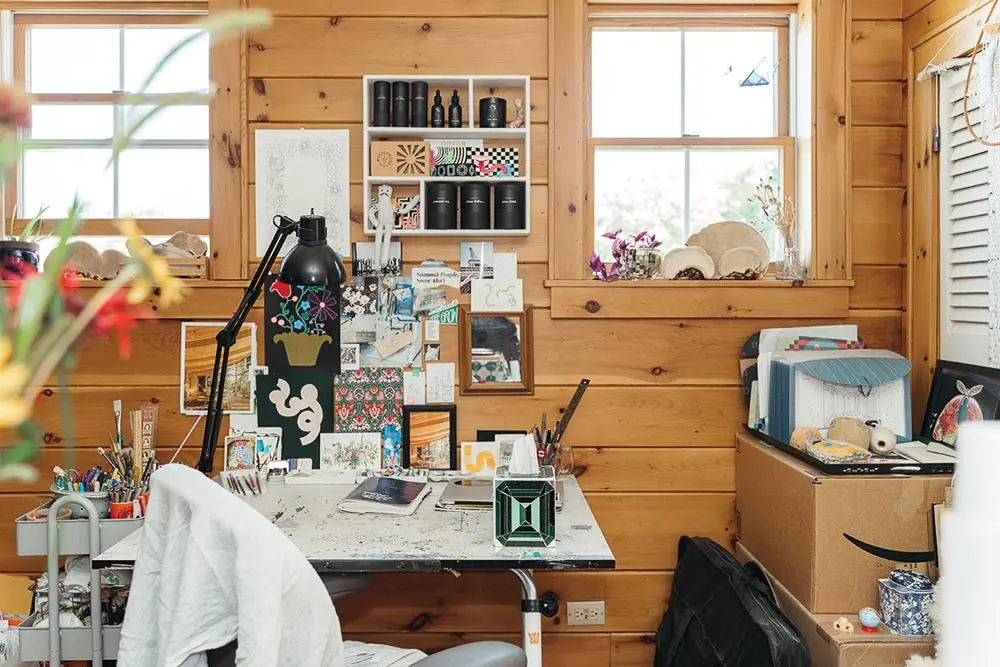 My first studio, in Brooklyn, I shared with two other people and we had no windows. Now, I’m like, “Mike, there are five windows! And they’re all mine!” To be able to look out at the pasture and, when you need that mental break, play in the garden, I feel like I’m describing a fake experience because it makes me that happy.