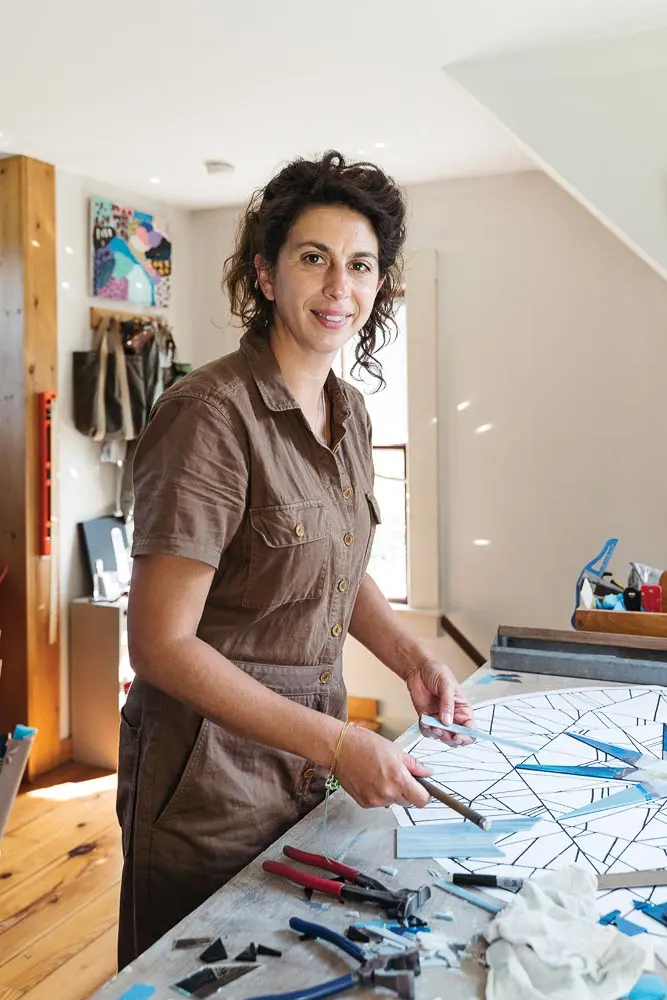 When she’s not in her studio, Martone serves as a co-curator at Bristol’s The Good Supply (which sells her mosaics), runs a summer art camp for kids, and helps Bannon manage their 25-acre farm, where they raise vegetables, chickens, and pigs. “People always joke, ‘You’re a girl from North Jersey, lived in the city, and now you’re a pig farmer?’” Martone says with a laugh. “And I tell them, ‘I’m living the dream.’”