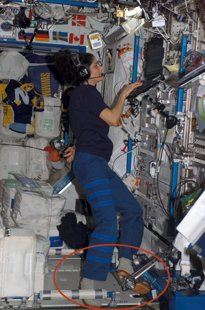 Astronauts Hank Hartsfield and Ken Mattingly wear slipper socks made by Lewiston’s Acorn Products Company on NASA’s fourth space-shuttle mission.