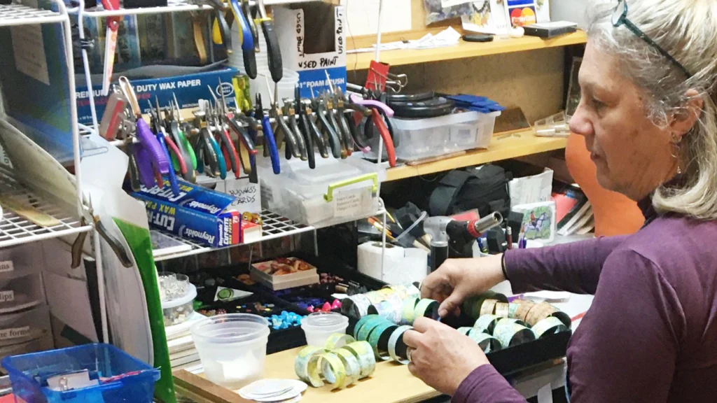 Coleman grew up in Massachusetts and vacationed on Cape Cod — her childhood memories consist of summers in Buzzards Bay, where small, colorful boats dotted the water. As an adult, she visited Maine for years with her husband and son, skiing at Sunday River and exploring Acadia National Park and the coast. Shortly after retiring in 2002, she started making jewelry that she sold in small shops around Cape Cod. Then, in 2005, Coleman and her husband moved to Maine.