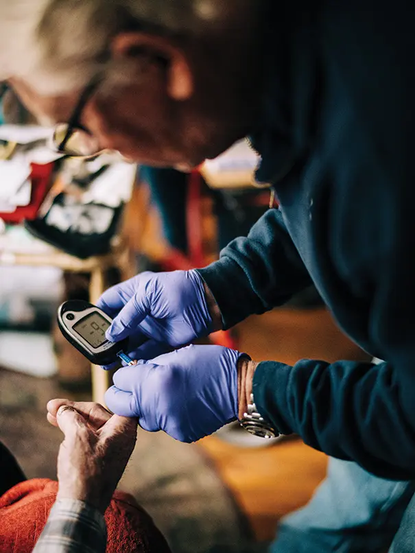 Now, Eaton has been checked on every Wednesday for the past three years by Walter Reed, an EMT, the director of Memorial Ambulance Corps, and a remarkably spry 81-year-old. A visit with Eaton typically entails some chitchat and jokes as well as some checking of blood-glucose levels and organizing of medications. “It takes an awful load off your mind,” Eaton says. “I know these folks, and they know what they’re doing.”