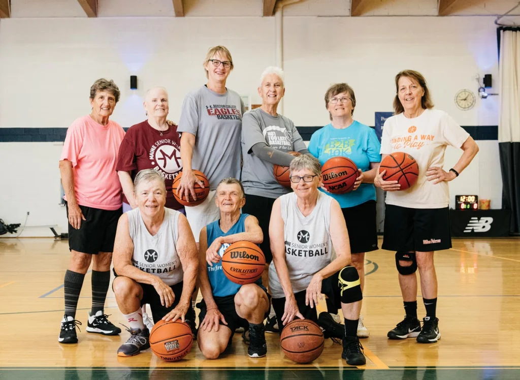 When the Maine Pioneers have their weekly practice, the gym at Portland’s former Catherine McAuley High School fills with the drum of bouncing basketballs, the squeak of sneakers, and the guffaws of eight women, all of them over 70. For an hour, the players barely stop moving, alternating drills to brush up on layups, pivots, and free throws — simple things that can make or break a game. Passion for the sport keeps the ballers of the state’s oldest women’s basketball team feeling — and playing — like they’re much younger. What’s more, says 76-year-old Pioneer Jo Dill, it keeps them hungry. “Everyone wants to win,” she says.