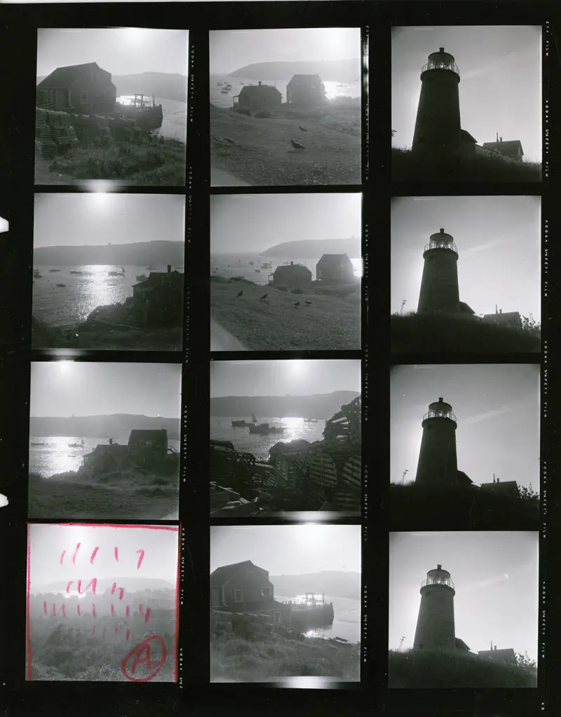 Johnson: Well, he was not a news photographer, and he wasn’t covering news stories, for the most part. He was a photo essayist. I would say that’s the best way that you can describe his work, and it’s why we approached this exhibit the way we did. We didn’t want to have just single photos from these Maine assignments in frames on the wall, because single photos just don’t tell the stories. And that’s not how he shot it, you know? We wanted it to come across like images on a photo editor’s desk — these are the pieces they’d have been working with to come up with a four-page piece in LIFE or Look. We wanted to show not just photos but also his contact sheets and his wax pencil mark showing where to crop. Those are the kinds of things that are really exciting for us to find because we just get to see how his eyes worked. And then we also wanted to point out the ways that he composes photos, to point out some of these things that make these photos strong for people who, you know, may think, “I love this photo. But why do I love this photo?”
