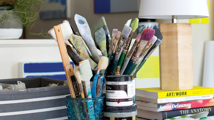 In her light-filled SoPo studio, Laurie Fisher ponders, procrastinates, and eventually paints her arresting, organic-geometric works.