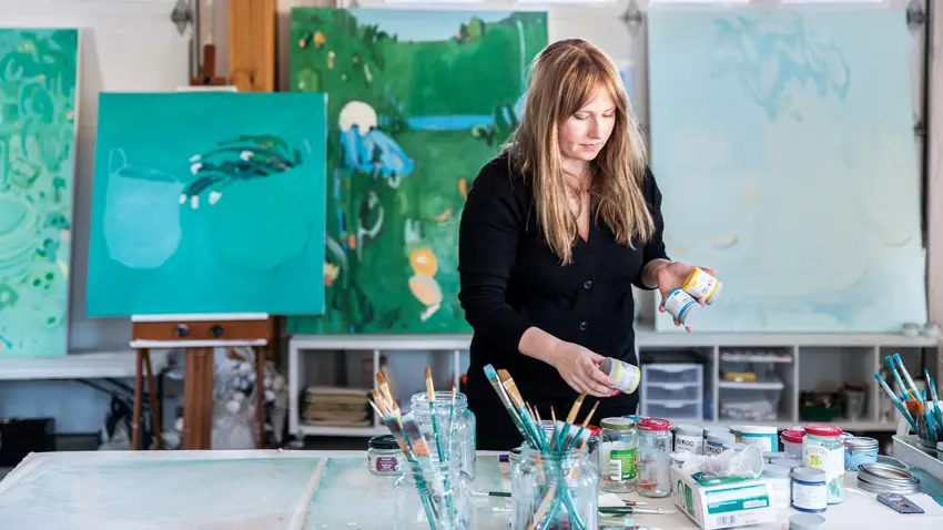 In her Woolwich garage, Hannah Secord Wade wrestles with containing chaos in vibrant, richly layered works.