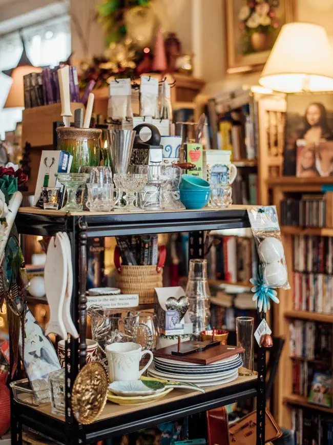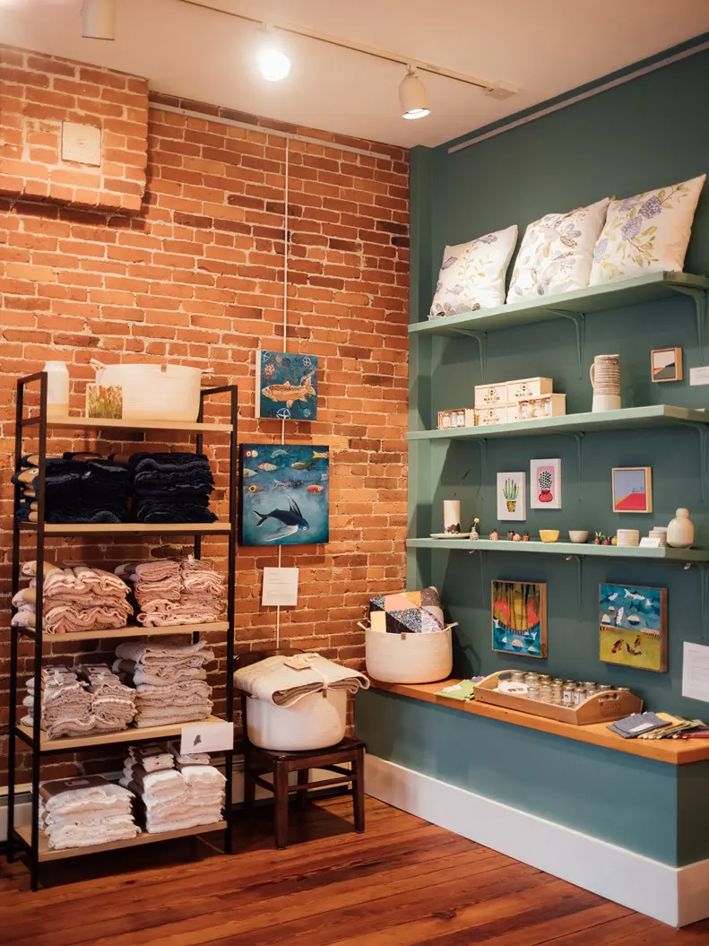 Jen Wenz fills her thrift-and-more store with gently worn fashion — including cool hats, belts, and vintage tees — plus all manner of gifts, from candles to books to jewelry. It’s also a one-stop shop for New Age needs: incense, tarot sets, and more. Purchases support Wenz’s nonprofit, Pay It Forward for Kids, supplying Maine kids with warm clothes, school supplies, and other necessities. 28 E. Main St. 207-548-4187.
