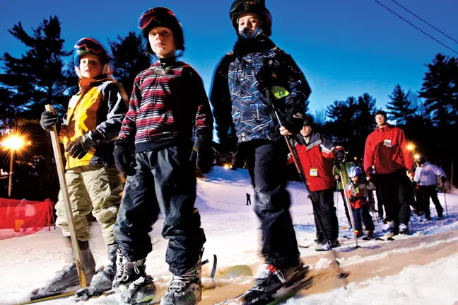 Free from the shackles of teachers and parents, competitive high-school teams, middle-school snowboarders looking for something to do, and still-learning tots release a day’s worth of pent-up energy by flying down the mountain with reckless abandon until dinner time. It’s been this way every winter at Lost Valley for fifty-one years. Little has changed, and that’s just how Mainers like it.