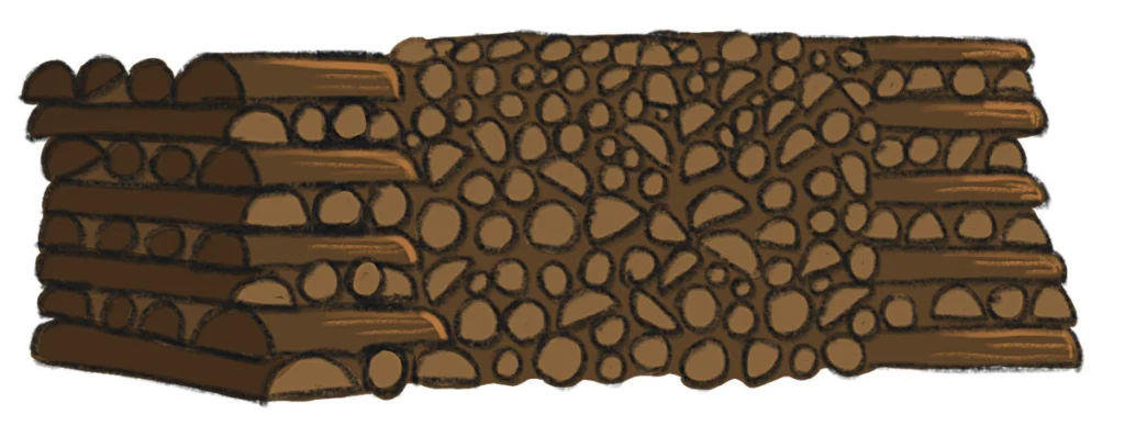 The Norwegians and Germans, among others, are fond of this attractive approach. Arrange layers of wood in a circle at a consistent radius around a central point (ideally atop a ground cloth), creating a circular wall with a hollow core (imagine a grain silo with stacked-wood walls). Into the well-ventilated center, toss irregular logs and scrap wood. The Germans call it a holz hausen and stack flatter, shingle-like pieces on top to create a peaked roof. Horie is a fan of this style for how it “brings us back to being a kid again.” She adds a little door to each of hers. “It has no real function,” she says — just a dose of whimsy.