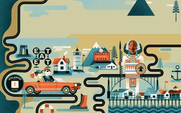 Now U.S. Route 1 in Maine? That’s our kind of interstate. It has history — in fact, it was the country’s very first interstate highway. It has grandeur — Federal-style mansions, the Camden Hills, Aroostook County farmland with great, yawning skies. It has contradictions — folks tend to call it Coastal Route 1, though more than a third of its 527 miles are profoundly landlocked. It has a cast of characters. It has a sense of humor. It has pie.