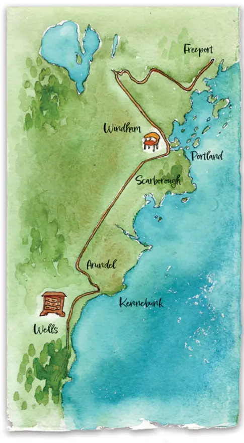 “My favorite spot for a treasure hunt is Elmer’s Barn (107 Rte. 17, Whitefield; 207-549-7671). The adventure starts before you step inside, with the pickings filling the porch and spilling onto the grounds. Inside, I feel a bit like Alice following the white rabbit. Paths lead you from booth to booth, room to room until you come upon one of many curious staircases that bring you to another floor, and then another, each with more rooms and passageways through stacks of goods. From blueberry crates to travel trunks, furniture to fishing traps, candlesticks to sawmill blades, you will find almost anything (including your way out, eventually)!”
