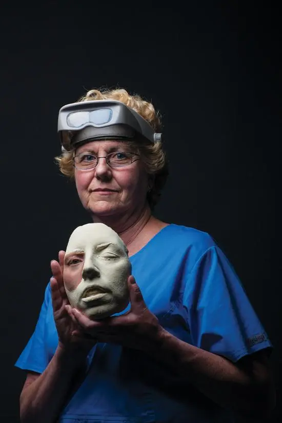 So Thomas-Smith did just that. In New York, the staff at the VA prosthetic research center took one look at her fine-arts résumé, then asked when she could start. Thus began a decade-long career with the VA, one that eventually saw her running the agency’s eye and facial clinic in Boston. Then, as now, Thomas-Smith explains, an artist’s skill set was invaluable, since creating prosthetics is as much an aesthetic endeavor as a medical one.